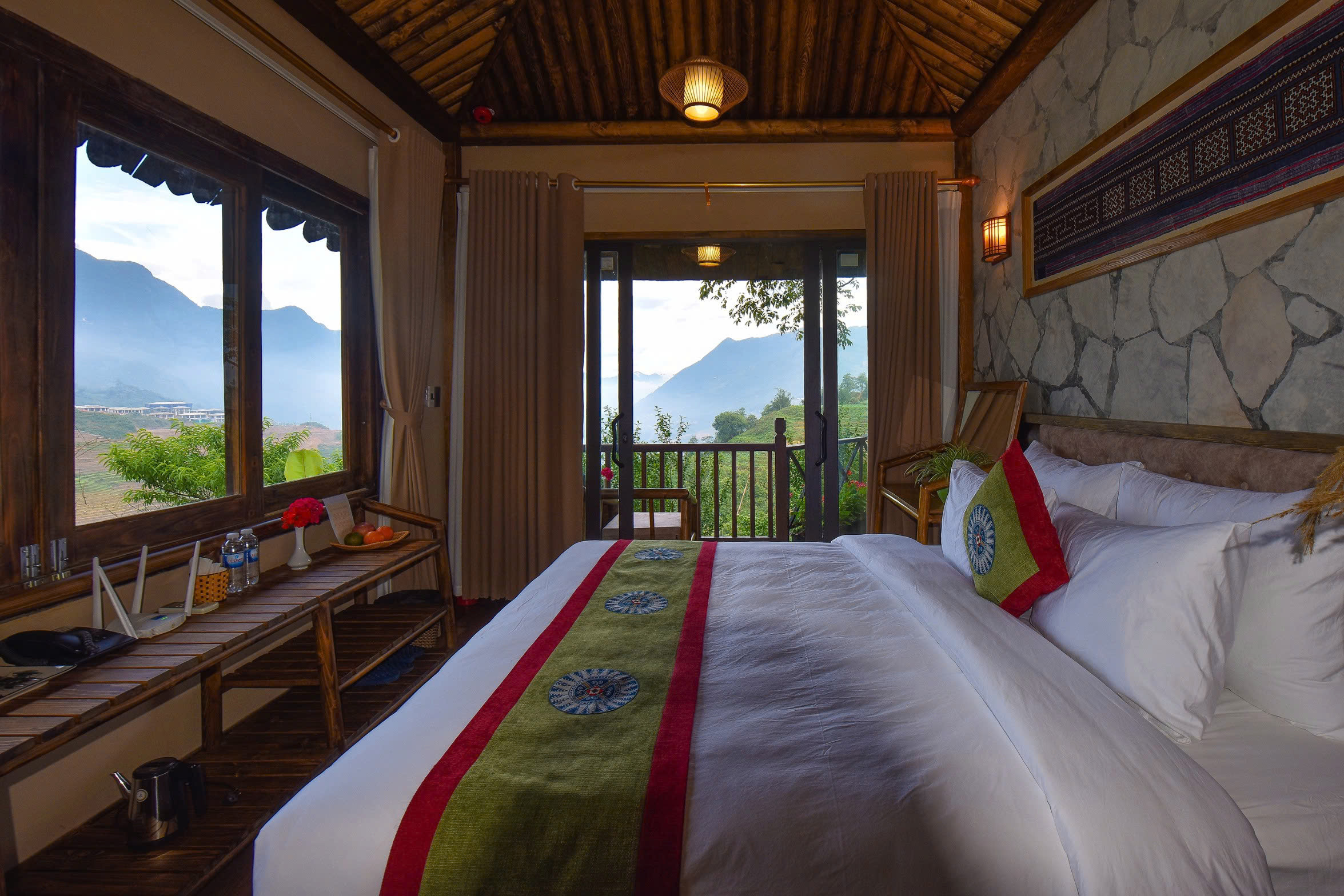 Phòng có view tuyệt đẹp ngắm nghì thung lũng Mường Hoa với những bản làng người dân tộc đan xem những thửa ruộng bậc thang kỳ vỹ.