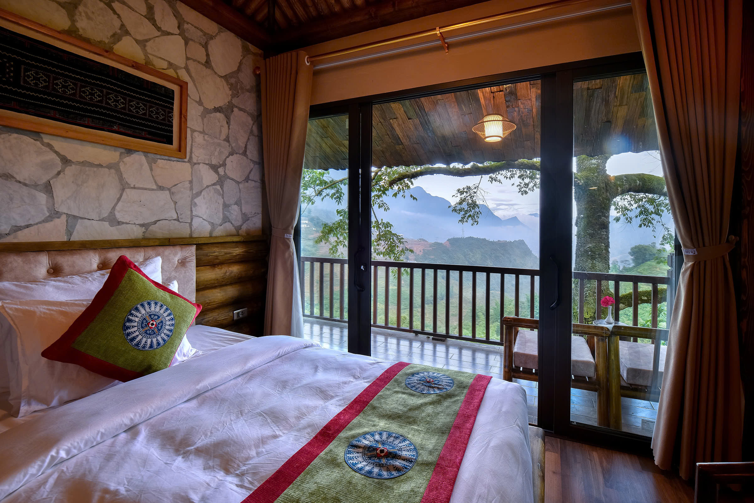 Phòng có view tuyệt đẹp ngắm nghì thung lũng Mường Hoa với những bản làng người dân tộc đan xem những thửa ruộng bậc thang kỳ vỹ.